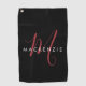 Elegant Modern Black Red Script Monogram Golf Towel. An elegant red script monogram combined with a clean white san-serif font makes for a contemporary look.