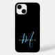 Elegant Modern Black Sky Blue Script Monogram Case-Mate iPhone Case
