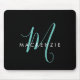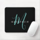 Elegant Modern Black Teal Script Monogram Mouse Pad