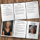 Customizable black and white funeral program template tri-fold design, ideal for memorial services, celebrations of life, and funeral ceremonies. Featuring an elegant serif font, this professionally designed layout includes space for a front cover photo, order of service, obituary, poem or prayer, acknowledgments, or any other text with custom headings. The timeless black and white palette conveys grace and dignity while maintaining a clean, easy-to-read presentation. Designed for personalization, this editable memorial program allows families to honor their loved one with thoughtful structure and clarity. Perfect for those seeking a traditional and refined memorial booklet with a modern, minimalist touch.