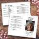 Affordable celebration of life bifold programs with a clean black and white layout offering a dignified and budget-friendly option for memorial services. This funeral program design includes a large front photo with fully editable elegant serif and script typography on a minimalist white background. Inside, the layout is thoughtfully divided to include a suggested order of service and obituary section, and the back has space for acknowledgments or any other text, providing all essential content in a single folded card. Ideal for families seeking budget funeral printing solutions without compromising on style or personalization, this simple and tasteful design ensures a respectful tribute that’s both economical and beautifully presented.