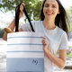 Elegant Modern Bold Stripes Monogram Initials Blue Tote Bag