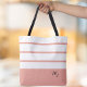 Elegant Modern Bold Stripes Monogram Initials Pink Tote Bag