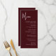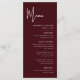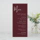Elegant & Modern Burgundy Wedding Menu is created to elevate your dining experience with refined style and thoughtful presentation. The rich burgundy color adds warmth and sophistication to your table setting, instantly complementing formal, modern, and romantic wedding themes. A clean, contemporary layout ensures each course is displayed clearly, allowing guests to enjoy the menu at a glance while appreciating its elegant design. Carefully selected typography and balanced spacing give the menu a timeless feel that pairs beautifully with coordinated wedding stationery. Designed for couples who care about every detail, this wedding menu transforms your meal listing into a polished finishing touch that enhances the overall ambiance of your celebration.