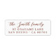 Elevate your mail with this minimal, modern return address label. The family name is printed in elegant calligraphy, with the address neatly positioned below in capital letters. Perfect for adding a clean, minimalist touch to your mail, this label is both practical and stylish, making it ideal for any occasion. View the collection linked on this page for matching items, or visit our store for more return address labels.