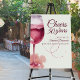 Celebrate a milestone in style with this sophisticated 50th birthday Welcome sign. The design features a watercolor red wine glass on the left, paired with the elegant script text “Cheers to 50 years” on the right. Party details are displayed in a clean serif font on a light off-white background, giving the card a timeless look. The back continues the theme with the same watercolor glass and the fun phrase “Pour the wine, it’s party time.” Perfect for a classy celebration.