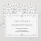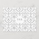 Vintage elegance ornate swirl frame design in charcoal black on Editable white background. Damask pattern with monogram design on the back, modern, elegant and classy, perfect for vintage wedding, art deco wedding all year round. Editable background color to match your wedding theme colors. Customize it with any information you would like your guest to know.