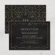 Vintage elegance ornate swirl frame design in gold color on grunge black background. Damask pattern with monogram design on the back, modern, elegant and classy, perfect for vintage wedding, art deco wedding all year round. Editable background color to match your wedding theme colors. Customize your own reception card for your wedding invitation set.