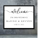 your guests to your wedding with this elegant sign. Ability to change text to any other event. Design with beautiful modern hand written calligraphy details. 10" x 8" is simply our default size, you have the ability to choose from a great variety of size options. Ability to change white "background color" to other color by selecting "customize further". "IMPORTANT NOTE: This sign is in premium poster paper style, easy to frame or glue/staple to inexpensive MDF or foam board for display. This same sign design is also available in foam board presentation ready for display, which you can find it in our collection". Part of our "Modern Elegant Wedding and Events Signage" collection with a variety of coordinating products available. Dimensions of sign in demo photo with stand: 24" x 18"