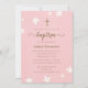 Elegant Modern Cross Pink Daisy Religious Baptism Invitation