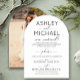 Plain white envelopes are included with paper invitations and will come to fit the invitation size you select. If you don’t need the envelopes, you may choose to not receive them by selecting the dropdown below "Envelopes" and choosing "None." If you’d like to have a design on your envelopes, you can browse all of these available envelopes to find the design that complements your Elegant Modern Elopement Script Photo Reception Invitation.