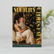 Elegant Modern Family Photo Green Merry Christmas Foil Holiday Card