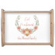 Celebrate the joy of Eid with this elegant modern "Eid Mubarak" serving tray. In soft tones of pink, white and green, this tray features a beautiful floral wreath, gold lantern, and space to personalize with a family name, for an extra special touch. A fresh, minimal, contemporary look that complements many home décor styles. Great for entertaining at Eid al-Fitr, to mark the end of Ramadan, or at Eid al-Adha.