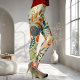 Elegant leggings featuring a modern colorful abstract floral leaf pattern design.