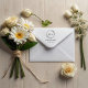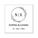Elegant, simple, modern round floral wedding wreath initials, names, and date rubber stamp. The graphics are from freepic.com.