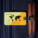 A great design to identify your belongings. Black map of the World in a two-tone yellow background with your address, name and initials on it