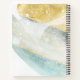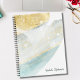 An elegant notebook with a gold foil and teal, gray watercolor effect abstract pattern. In the bottom left corner of the notebook , in dark gray script typography, you can easily customize with your name. The back of the notebook has the same pattern slightly larger. If you don't want to personalize with your name, simply delete the example text in the Personalize option box.