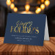 Elegant Modern Gold Script Business Corporate Blue Holiday Card