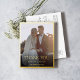 This is a modern wedding thank you postcard using a stylish font in gold foil along with a single minimalistic photo with a gold frame border, also using real gold foil. This design applies a filter to your photo for a muted modern feel. You can remove this filter by clicking on the blue button and selecting the filters to edit.
