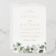 Elegant Modern Green Leaf Wedding Golden Foil Invitation