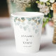 Elegant Modern Leafy Paper Cups für Ihre Gastgeschenke. Ideal für Ihre Hochzeit und einfach zu bearbeiten. Füllen Sie Ihre Daten ein, Sie können die Schriftart, die Position usw. individuell durch "weitere Personalisierung" auswählen.