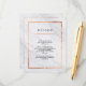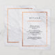 Wedding guest information cards in elegant rose gold and marble. Simple black text against a white marble background is fancy and formal, with the gold accents adding an extra chic touch.