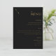 Modern wedding menu with elegant minimalist typography design in black and gold color.