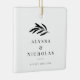 Modern wedding ornament with your custom names in an elegant typography design and the date of your celebration. On the back is space for your favorite photo of the nuptials. This is the minimalist black and white version. Great keepsake gifts for newlyweds!
