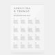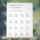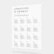 Acrylic wedding seating chart sign featuring modern minimalist typography in black and white color.