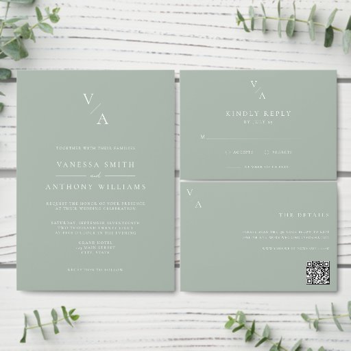Elegant Modern Monogram Sage Green Wedding Invitation