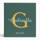 A modern recipe binder with a dark green background, the monogram is in a trendy yellow and the script typography is in off white. Easily customize with your details be using the Personalize option available.