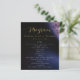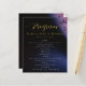 A few branches of eucalyptus leaves, hand-drawn in color pencil and layered with shades of dusty and dark purple, make for a modern, sophisticated, elegant yet chic wedding program. The black and dark blue background with hints of purple and lights illuminate the midnight sky.