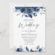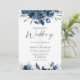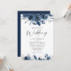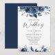 Elegant Modern Navy Blue and Silver Floral Wedding Invitation