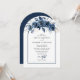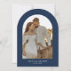 Elegant Modern Navy Blue Floral Arch Photo Wedding Invitation