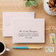 Custom pale pink colored wedding RSVP envelopes feature a modern and elegant custom soft black response address that can be personalized on the front.