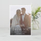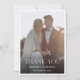 This is a modern wedding thank you card using an elegant and modern font along with a single minimalistic photo on the front with a white frame border.