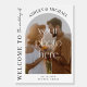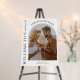 Create your own foam board wedding sign featuring one of your photos in an arch shaped frame alongside custom names, date and other wedding details in modern typography. An elegant minimalist way to greet guests on your special day.