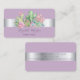 Elegant stylish business card with watercolor cactus and silver stripe.