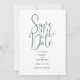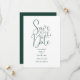 This emerald green elegant script wedding save-the-date invitation can be personalized with all your special wedding day information and wedding website QR code. Designed by Thisisnotme©