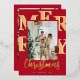 Elegant Modern Red Photo Merry Christmas Script Foil Holiday Card