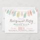 Cute, colorful, modern retirement party invitation with pastel blue, teal green, pink, coral, yellow, and taupe brown colors. Elegant, man or woman coworker formal corporate business office retirement celebration invite. Great year round for spring, summer, fall, or winter retirement parties.