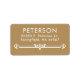 Elegant modern white on gold return address labels featuring a classic sans serif font for a minimalist feel above a clean lined scroll.