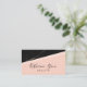Pretty business card design featuring faux copper rose gold glitter, blush pink and black marble color block.