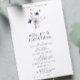 Beautifully designed wedding ceremony program, featuring delicate wildflower and fern graphics in serene blue, green, and earthy brown tones. Clean, modern typography and minimalist composition create a timeless look on crisp white backgrounds, with options of a subtle pop of color with coordinating blue or green reverse-side accents (see online shop). Perfect for couples seeking a blend of natural elegance and contemporary simplicity. ✦✦✦