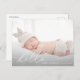 white lettering script photo new born baby birth announcement card, personalized photo card. The text and colors can be edited.