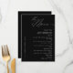 Need a black and white, classic and minimalist Wedding dinner menu card? Our design features modern script typography and enough space for your menu options.
