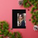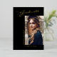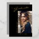 This real foil, modern elegant graduation announcement card, features design elements of modern text fused with elegant calligraphy script. The graduates horizontal photo is artfully placed on the front of the card while the back of the card offers personalized text spaces for information about the graduation and future journey. Backgrounds are black on the front and silver gray on the back or easily customize them to colors of your choice. To see more items like this, visit my store here at "www.Zazzle.com/LakeViewCardCo". Thanks
