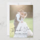 Simple minimalist elegant chic wedding white overlay calligraphy script personalized thank you card with your full bleed photo, custom text, and signature.