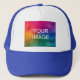 White And Royal Blue Elegant Modern Template Create Your Own Upload Image Logo Photo Trucker Hat.
