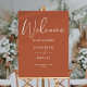 This elegant terracotta wedding welcome sign can be personalized with your information in chic typography. Designed by Thisisnotme©